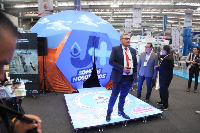 Ciudad Juárez, Chih .- A diferencia de los otros stands que estuvieron presentes en la Expo ANEAS, la Junta de Agua y Saneamiento de Juárez presentó un domo geodésico de 6 metros de diámetro, en el cual exhibió un video de dos minutos con los principales avances tecnológicos implementados por este organismo operador y que fueron la sensación de los asistentes a este evento.