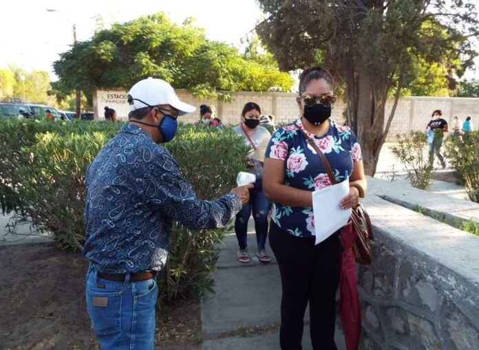 La funcionaria pidió a los beneficiados portar cubrebocas, mantener una distancia considerable entre cada persona y llevar pluma en color azul para uso personal.