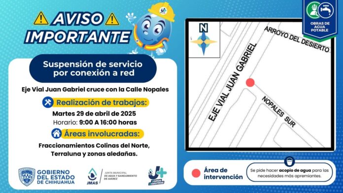 Para hacer estos trabajos, se impactará la prestación del servicio, entre las 9:00 y las 16:00 horas de mañana, en los fraccionamientos Colinas del Norte, Terraluna y zonas aledañas.