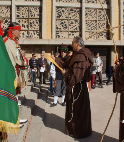 Momentos antes, se llevó a cabo la lectura del acta constitutiva, con la representación del momento histórico de la fundación de La Villa Paso del Norte, ocurrido el 8 de diciembre de 1659, por la Asociación de Historiadores Paso del Norte, encabezados por José Ignacio Frausto Ojeda, quien hizo el papel de Fray García de San Francisco.