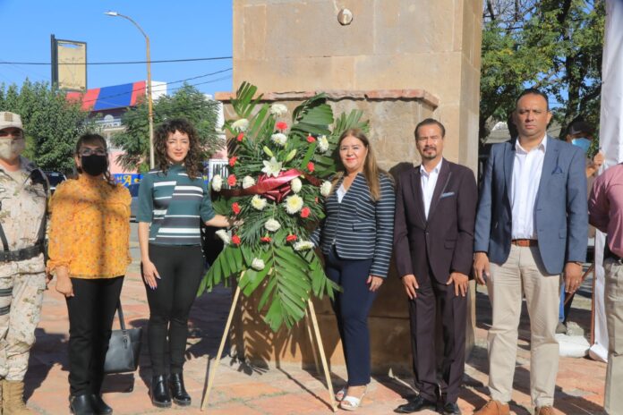 Para finalizar el acto, se colocó una ofrenda floral y se hizo una guardia de honor por los miembros del presidium, que estuvo integrado por el Comandante de la Guarnición Militar, el General Brigadier del Estado Mayor Francisco Antonio Enriquez; el Secretario del Ayuntamiento Héctor Rafael Ortiz; el Secretario de Seguridad Publica Municipal, César Omar Muñoz Morales; regidor de la comisión de educación, Jorge Marcial Bueno; la directora de Educación, Martha Aracely González y el Director de Protección Civil, Roberto Briones Mota.