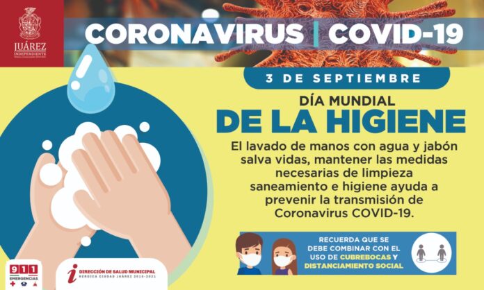 Ciudad Juárez, Chih. – El Gobierno Independiente a través de la Dirección de Salud se suma a esta celebración, en la cual se invita a la ciudadanía a mantener hábitos de limpieza, saneamiento e higiene como una de las medidas más importantes para prevenir el contagio de Coronavirus COVID-19.