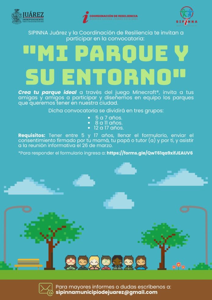 Además comentó que a partir de hoy inicia la convocatoria “Mi Parque y su Entorno”, a través del juego Minecraft e invitan a participar a niños y adolescentes de 5 a 17 años, cuyo registro puede realizarse en el siguiente enlace:https://forms.gle/QwT61qa9xifJEAUV6, misma que concluye el 19 de marzo.