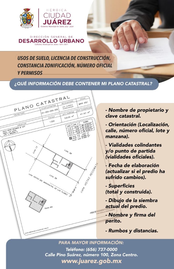 Ciudad Juárez, Chih .- La funcionaria explicó que el plano catastral es una representación gráfica de las características de un inmueble urbano o rústico, en el que se declara su clasificación, tipo de desarrollo y superficie.