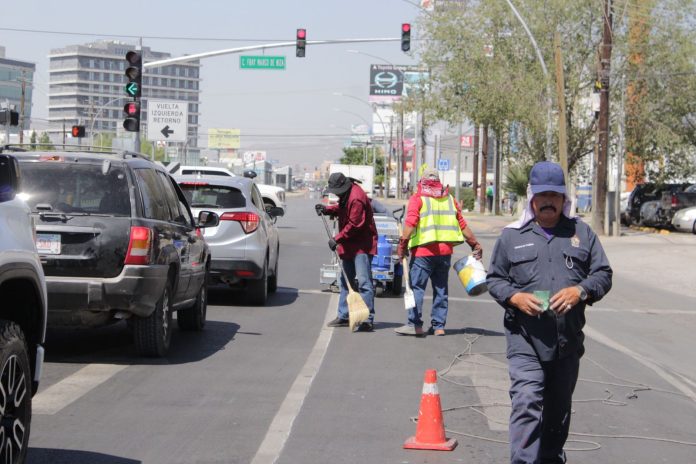 Ciudad Juárez, Chih .- A este punto arribó el coordinador de la dependencia, César Alberto Tapia Martínez, acompañado del encargado de Control de Tráfico, Jesús Ortega, quienes revisaron los trabajos que se estaban efectuando.