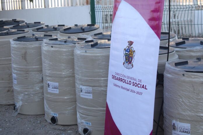 Ciudad Juárez, Chih .- “En esta ocasión hicimos llegar 290 recipientes con capacidad de 200 litros, con el fin de asegurar un mejor manejo del agua en los hogares, ya sea que no cuenten con sistema de red, o de tenerlo, se presente una baja en la presión del mismo”, indicó el titular de la dependencia, Hugo Alberto Vallejo Quintana.