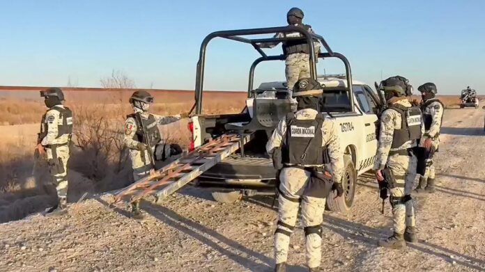 Ciudad Juárez, Chih (ADN/Arturo Hernández) .- Elementos de la Guardia Nacional y del Ejército Mexicano mantienen sus patrullajes en sobre el bordo del Río Bravo, con la intención de inhibir la internación de migrantes y el tráfico de drogas, sobre todo fentanilo.