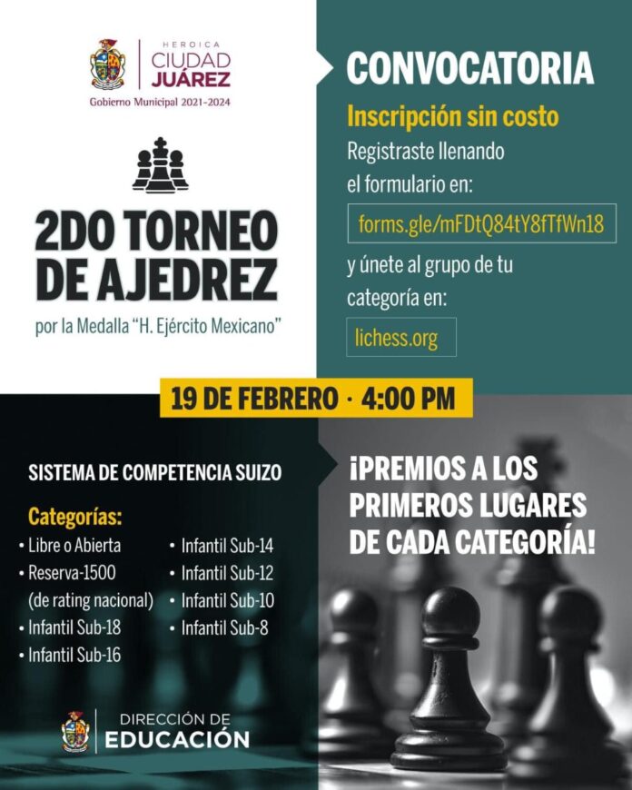 Ciudad Juárez, Chih .- La dependencia lanzó la convocatoria esta semana y el concurso se llevará a cabo el próximo 19 de febrero de manera virtual, a las 4:00 de la tarde en la plataforma digital lichess.org.