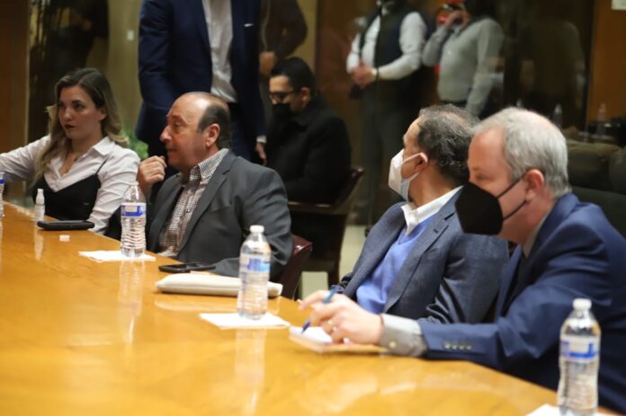 Ciudad Juárez, Chih .- El Presidente Municipal y su equipo de trabajo se reunieron esta tarde en las instalaciones de la Presidencia Municipal con las autoridades que participan en la Mesa Consular y en la Mesa Estatal de Seguridad. Ahí detallaron las acciones que emprenderán para brindar un mejor servicio a quienes acuden, especialmente de otros estados, a realizar trámites a la sede diplomática estadounidense.