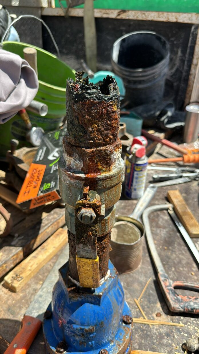Al llegar al lugar, personal de la J+ procedió a retirar la válvula descompuesta y a instalar un tapón provisional para controlar la fuga de agua potable.