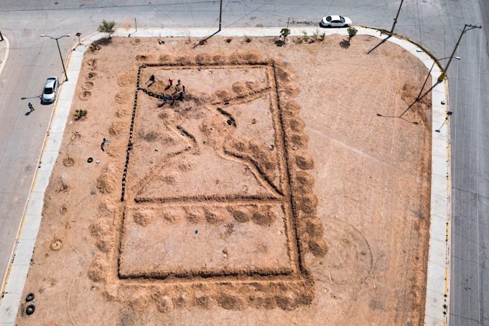 Se realizaron labores de limpieza del parque, de trazo de los espacios en los que se llevará a cabo cada actividad y la colocación de llantas que serán intervenidas artísticamente como parte del proyecto urbano “Mucho con Poco”.