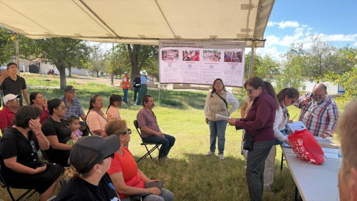 Ciudad Juárez, Chih .- Antonieta Mendoza, coordinadora de Atención Ciudadana, acudió en compañía de personal de la Secretaría de Desarrollo Agrario, Territorial y Urbano del Gobierno Federal, para socializar estos trabajos que ya presentan avances importantes.