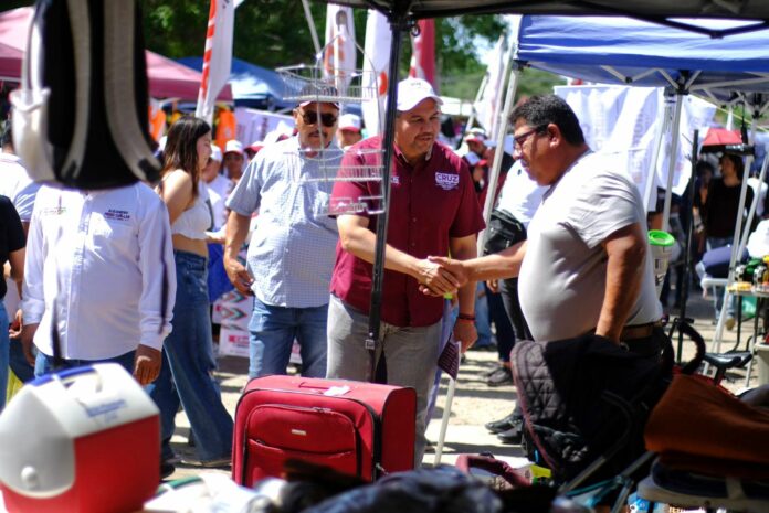 El candidato a la alcaldía por la coalición “Sigamos Haciendo Historia en Chihuahua”, Cruz Pérez Cuéllar, visitó el Mercado Las Rosas para presentar sus propuestas de campaña y escuchar las inquietudes de los comerciantes y ciudadanos.
