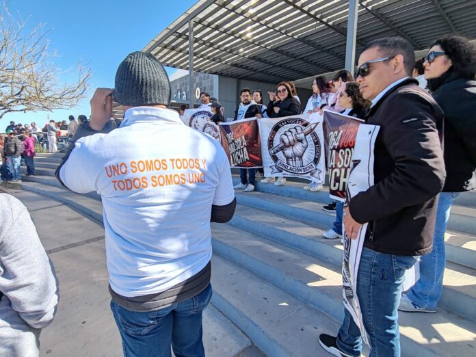 El reclamo fue a nivel estatal, y en lo que a esta frontera se refiere, los docentes del subsistema estatal se congregaron en el Parque Borunda, para luego enfilarse a las instalaciones de Pueblito Mexicano, en donde llevaron a efecto un mitin para hacer públicas sus demandas.