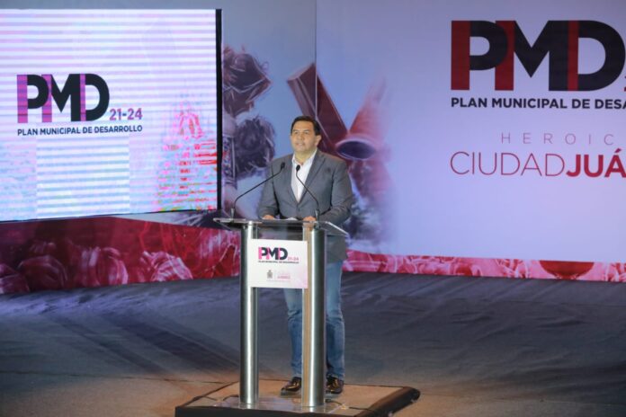 Ciudad Juárez, Chih .- El Presidente Municipal, Cruz Pérez Cuéllar presentó el Plan Municipal de Desarrollo 2021-2024 (PMD) que establece los ejes que regirán las políticas de Gobierno enfocadas a lograr la transformación de Ciudad Juárez y atender las necesidades de las y los juarenses.