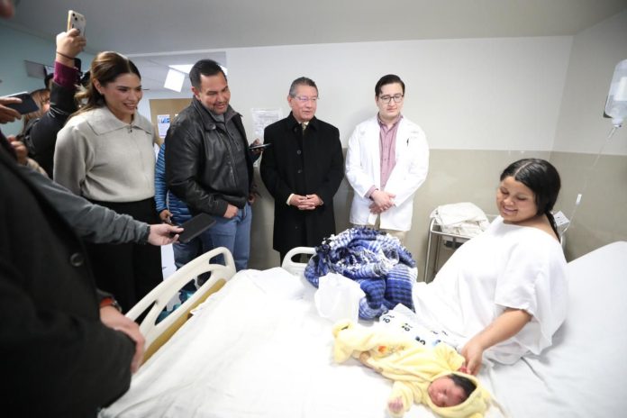 Ciudad Juárez, Chih. (ADN/Staff) – En un acontecimiento que marca el inicio de un nuevo año, el Alcalde de Ciudad Juárez, Cruz Pééz Cuéllar, junto a su esposa Rubí Enríquez, presidenta del Sistema para el Desarrollo Integral de la Familia (DIF), visitaron el Hospital de la Mujer para recibir al primer ciudadano juarense del 2024, Alan Arriaga Contreras.