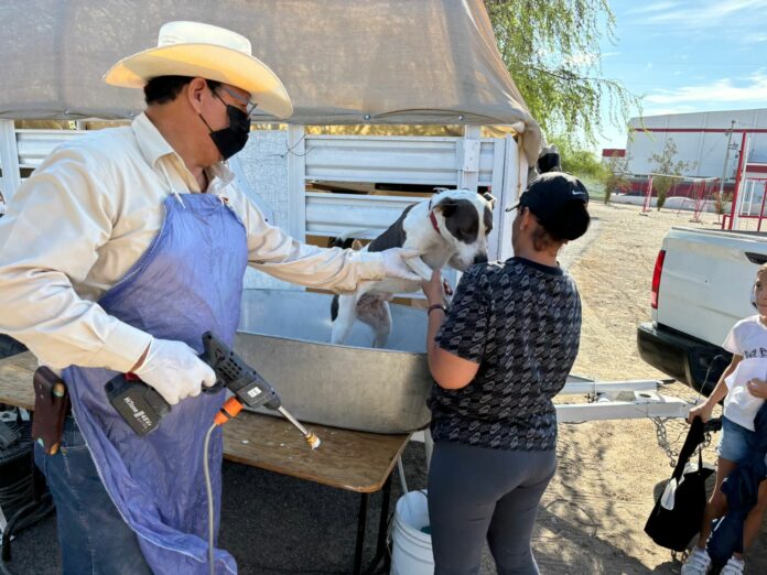Ciudad Juárez, Chih .– En lo que fue la tercera jornada de baños garrapaticidas gratuitos, la actividad se puso en marcha a las 8:00 de la mañana, hora en la que más de 30 personas ya esperaban con sus mascotas para iniciar el proceso que inició minutos después y se mantendría hasta la 1:00 de la tarde, dio a conocer César Díaz Gutiérrez, titular de Ecología.