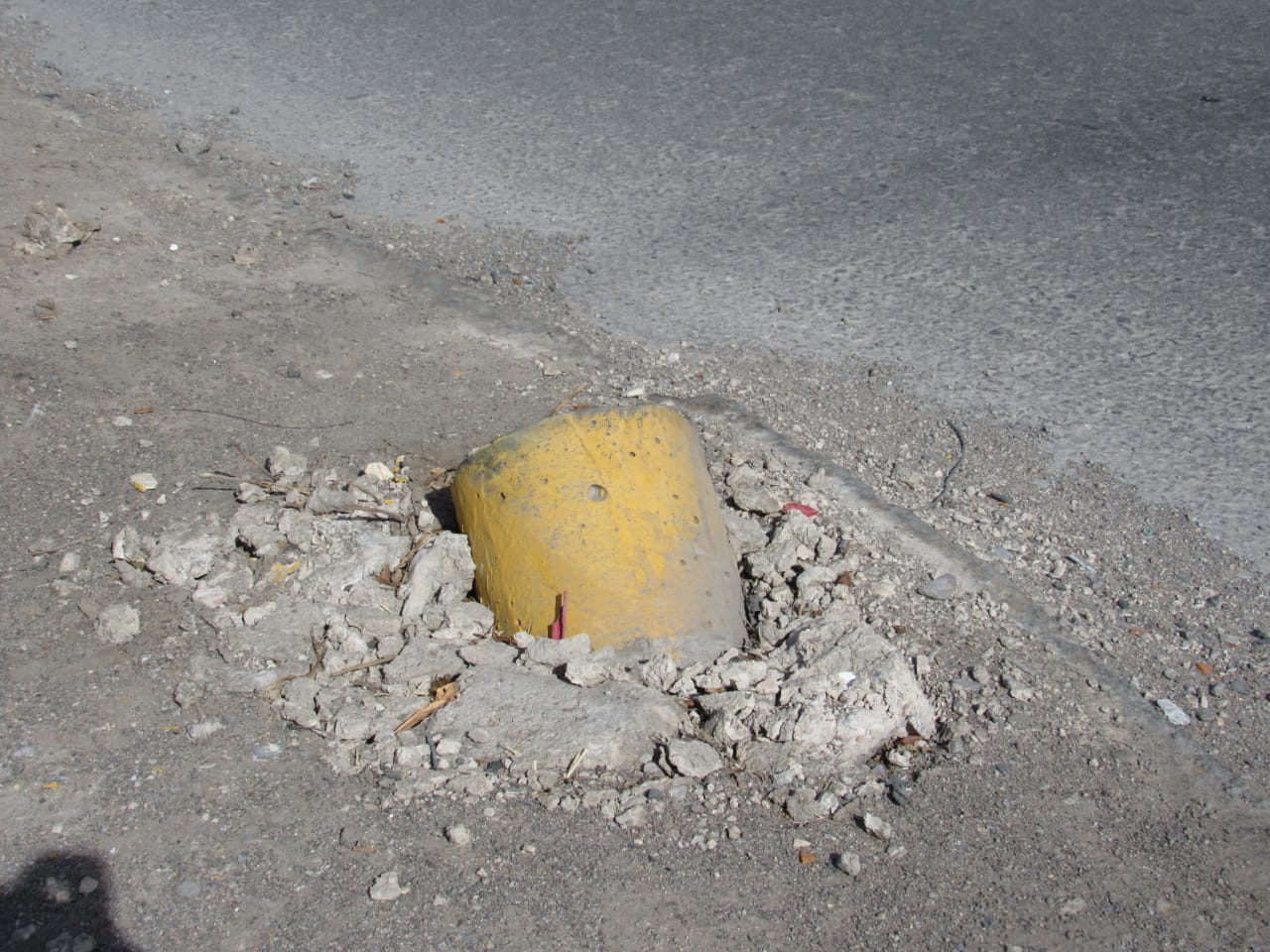 Ciudad Juárez, Chih. – Personal de la Dirección General de Servicios Públicos acudió a los camellones de las avenidas Rafael Pérez Serna y Heroico Colegio Militar para retirar todos los cilindros de concreto que resultaron dañados de nueva cuenta por automovilistas durante el fin de semana