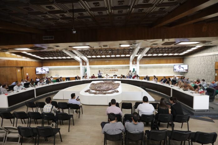 Durante la reunión previa realizada esta tarde, las y los regidores analizaron la propuesta presentada por las regidoras Martha Patricia Mendoza Rodríguez y Vanesa Mora de la O, a la que ediles del Partido del Trabajo, Nueva Alianza y Morena solicitaron suscribirse y apoyarla.