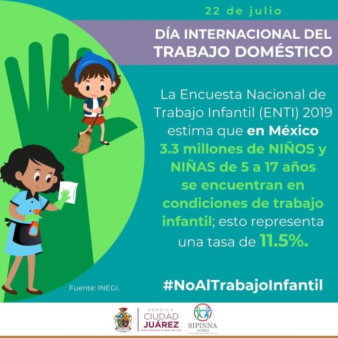 Así mismo, mencionó que de acuerdo con la Encuesta Nacional del Trabajo Infantil (ENTI) 2019, se estima que en México 3.3 millones de niñas y niños entre los 5 a los 17 años de edad se encuentran en condiciones de trabajo infantil, lo que representa una tasa de 11.5 por ciento.
