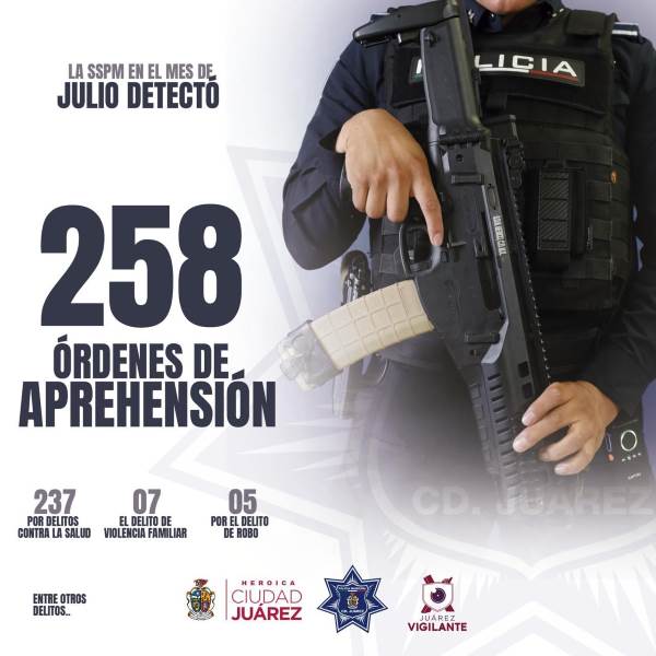 Ciudad Juárez, Chih. (ADN/Staff) – La Secretaría de Seguridad Pública Municipal ha informado que en el mes de julio del año en curso se identificaron un total de 258 mandamientos judiciales vigentes. Estos mandatos abarcan un periodo del 01 al 31 de julio, lo que refleja la importancia de mantener un seguimiento constante de los procesos judiciales en curso.