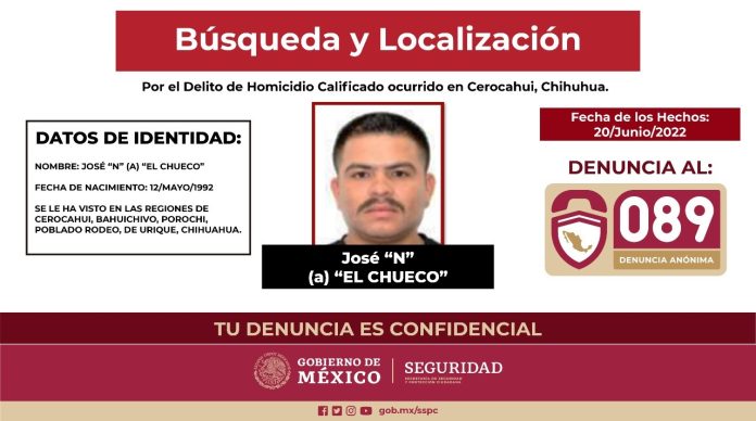 Ciudad Juárez, Chih (ADN/Arturo Hernández) – José Noriel Portillo Gil, alias “El Chueco”, es en la actualidad la persona más buscada por las autoridades policiacas estatales y federales, como presunto responsable del asesinato de dos sacerdotes jesuitas y de un guía de turistas, sin embargo, desde el 2014, algunos lideres de la sierra tarahumara solicitaron al entonces delegado de la PGR, Arturo Peniche, se le capturara por algunos delitos que habían cometido en la zona de Urique, y de Creel.