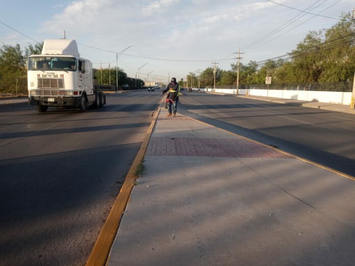 Como parte del programa permanente de limpieza y mantenimiento de vialidades principales, la Dirección de Limpia realiza labores en la avenida Antonio J. Bermúdez en el tramo que comprende desde la Vicente Guerrero hasta la Teófilo Borunda.