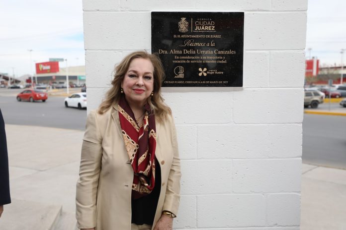“Conmemoramos a las mujeres que en honor a ellas y en agradecimiento estamos plasmando el nombre de una mujer de Ciudad Juárez que ha hecho historia, que ha dejado beneficio en nuestro municipio y en la sociedad y ella es sin duda la doctora Alma Delia Urrutia”, expuso.