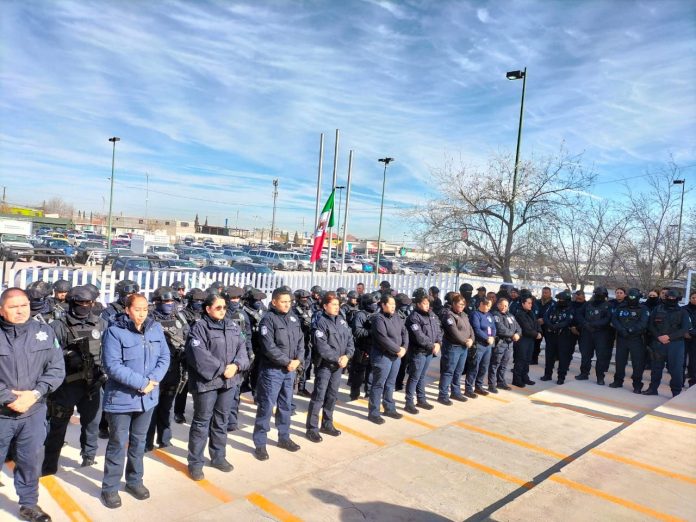 Ciudad Juárez, Chih. (ADN/Arturo Hernández) – El secretario de Seguridad Publica Estatal, Gilberto Loya, y Adriana Terrazas, presidenta en turno del Congreso del Estado, encabezaron la ceremonia en la que las autoridades estatales develaron una placa con memoria de los 10 custodios caídos durante la fuga de Ernesto Piñón de la Cruz., Alias “El Neto”, a un año de los hechos.