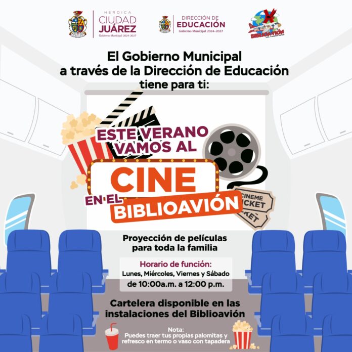 La Dirección de Educación Municipal invita a la población al “Cine en el Biblioavión”, donde podrán disfrutar distintas proyecciones cinematográficas a partir del lunes 28 de julio.