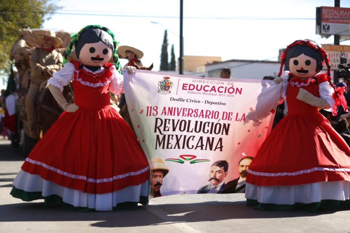 Cientos de juarenses asistieron este día al desfile Cívico-Deportivo que encabezó el Presidente Municipal, Cruz Pérez Cuéllar, para conmemorar el 113 aniversario de la Revolución Mexicana.