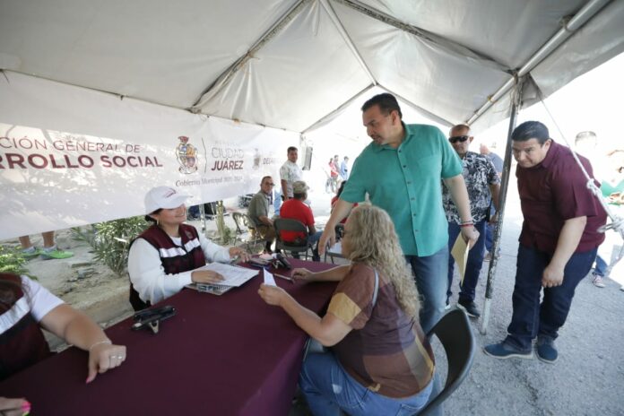 Ciudad Juárez, Chih .- Por tal motivo, esta mañana se recibió la visita del presidente municipal Cruz Pérez Cuéllar en uno de los módulos en donde se llevan a cabo dichas entregas por medio de Desarrollo Social.