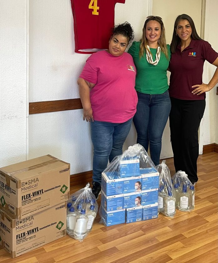 El Jardín de Niños y Estancia Infantil Municipal Eva Sámano de López Mateos recibió por parte del Sistema para el Desarrollo Integral de la Familia la donación de guantes de látex, cubrebocas y alcohol, insumos que serán utilizados en el área de cocina.