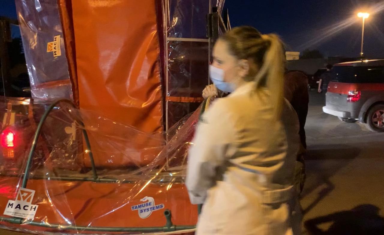 Ciudad Juárez, Chih. – Como parte de un compromiso y una iniciativa espontánea, que hicieron hace días a través de sus redes sociales; miembros de Clúster MACH, la noche del viernes entregaron al Hospital 66 del IMSS: cápsulas de aislamiento para pacientes con Covid-19, cubre bocas, caretas, batas y cabinas de intubación para apoyar a personal de salud durante esta contingencia.