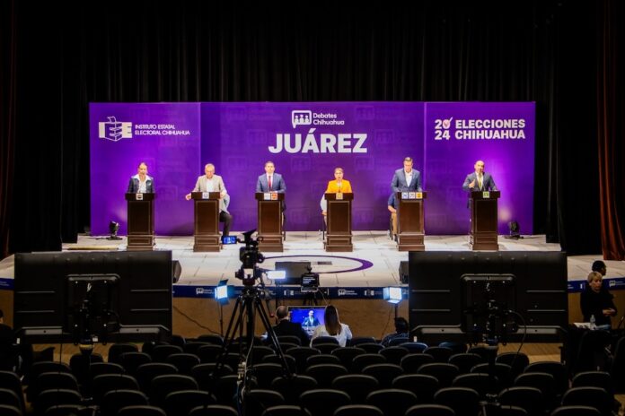 Ciudad Juárez, Chih. (ADN/Arturo Hernández) – El debate entre los candidatos a la alcaldía de Ciudad Juárez, que tuvo lugar en el teatro “Gracia Pasquel”, ha sido objeto de críticas por parte de Eduardo Borunda, destacado catedrático y presidente de la Asociación de Periodistas de Ciudad Juárez (APCJ). Borunda describió el evento como “acartonado” y criticó severamente la calidad de la producción televisiva y la falta de contenido sustantivo en las intervenciones de los candidatos.