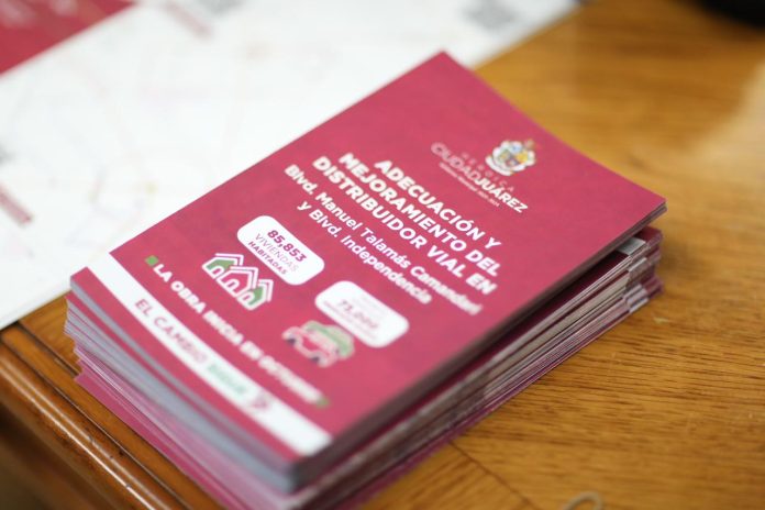 Ciudad Juárez, Chih .- Funcionarios del Gobierno Municipal dieron a conocer en conferencia de prensa que el próximo lunes 16 de octubre iniciarán las obras de adecuación y mejoramiento del Distribuidor Vial en el bulevar Manuel Talamás Camandari y bulevar Independencia.