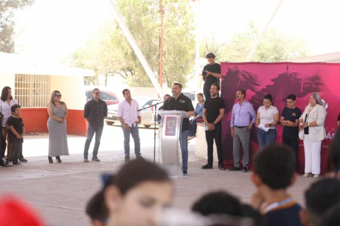 Ciudad Juárez, Chih .- “Muy buen día a los y las estudiantes a los padres y madres de familia, así como a los maestros y maestras que aquí nos acompañan en la entrega de las obras de la escuela”, expresó el alcalde.