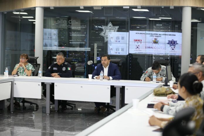 El Presidente Municipal, Cruz Pérez Cuéllar presidió la reunión de la Mesa de Coordinación para la Construcción de la Paz, en la que se dieron a conocer que resultados del trabajo de las diferentes instituciones policiacas y de rescate.