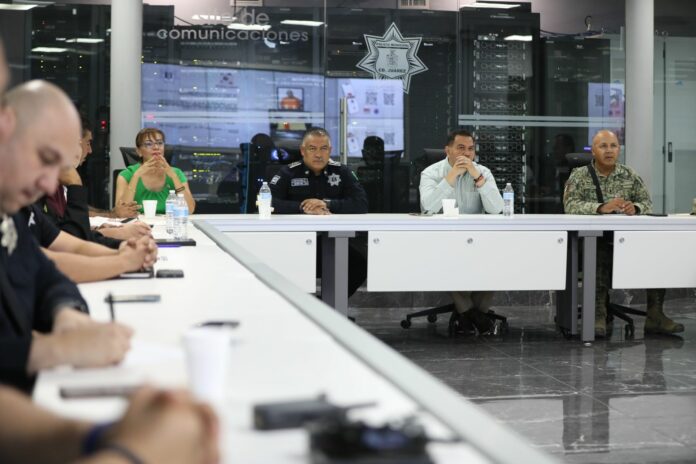 El Presidente Municipal, Cruz Pérez Cuéllar, en coordinación con las diferentes corporaciones de seguridad de los tres órdenes de gobierno, encabezó la Mesa de Coordinación para la Construcción de la Paz, la cual se llevó a cabo en el Centro de Emergencia y Respuesta Inmediata de la Secretaría de Seguridad Pública Municipal.