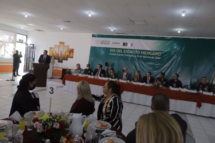 Ciudad Juárez, Chih .- El alcalde expresó que es muy grato para él estar presente en esta celebración para reconocer el esfuerzo que diariamente realiza el Ejército Mexicano.