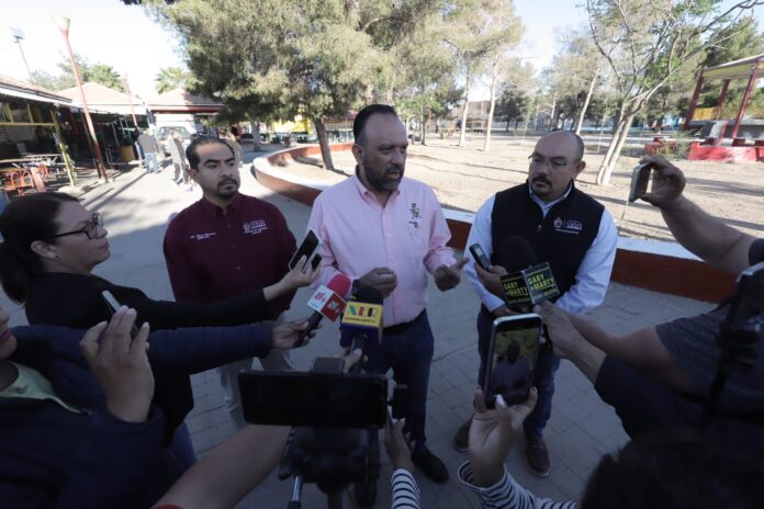 Ciudad Juárez, Chih. (ADN/Staff) – El secretario del Ayuntamiento, Héctor Rafael Ortiz Orpinel, encabezó un operativo integral de limpieza en el Parque Borunda, con la participación de diversas dependencias municipales y comerciantes del lugar, como parte de las acciones de mantenimiento ante la llegada de la primavera.