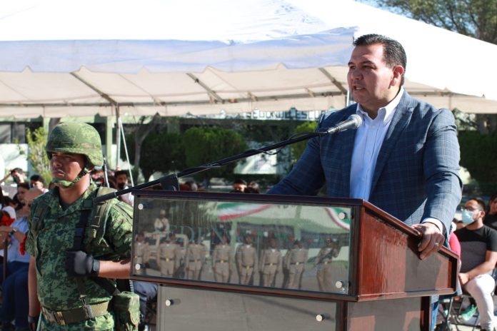 Ciudad Juárez, Chih .- Acompañando al General de División Diplomado de Estado Mayor Eufemio Alberto Ibarra Flores, Comandante de la Decimoprimera Región Militar, el alcalde agradeció la invitación a la ceremonia en la que culminó esta mañana el adiestramiento que se brindó durante 13 semanas a 84 jóvenes.