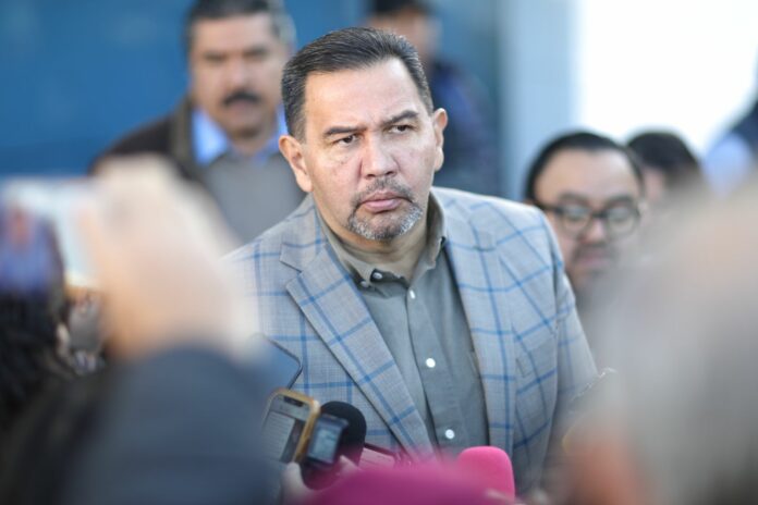Ciudad Juárez, Chih. (ADN/Arturo Hernández) – El presidente municipal Cruz Pérez Cuéllar encabezó este viernes una reunión clave de la Mesa de Seguridad en las instalaciones del Centro de Respuesta Inmediata 911, ubicadas en la estación Babícora de la Secretaría de Seguridad Pública Municipal (SSPM). Durante la sesión, se presentaron informes sobre los aseguramientos y detenciones realizadas en la última semana, además de delinear estrategias para enfrentar la violencia que afecta a la frontera.