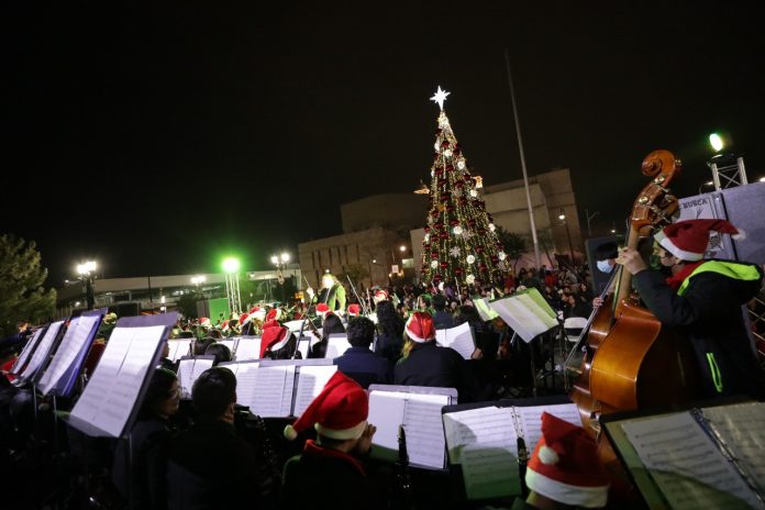 Ciudad Juárez, Chih .- Como parte de los festejos navideños, el Presidente Municipal, Cruz Pérez Cuéllar, realizó esta tarde el encendido del árbol navideño en la Zona Centro de la ciudad.