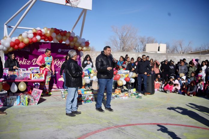 El Presidente Municipal, Cruz Pérez Cuéllar, entregó mil juguetes en el parque Teresa Rojas de la colonia Frida Kahlo, al suroriente de la ciudad.