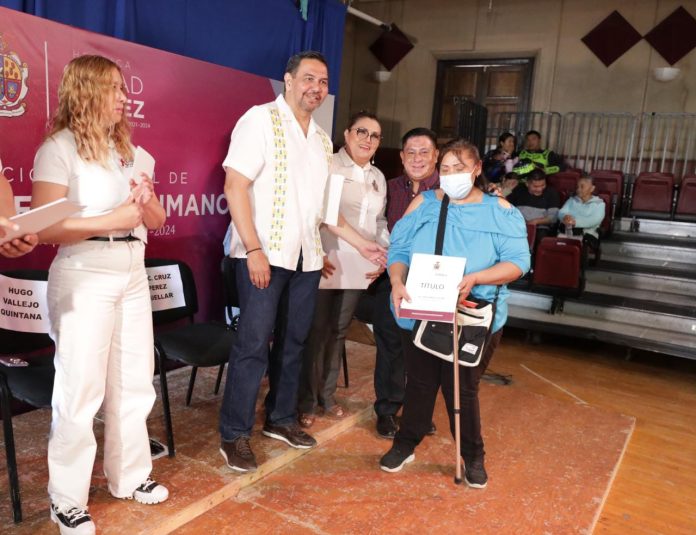 El alcalde de Ciudad Juárez, Cruz Pérez Cuéllar, entregó títulos de propiedad a 150 ciudadanos en un evento realizado en el Centro Municipal de las Artes. Los títulos de propiedad les dan certeza jurídica y generan estabilidad a muchas familias.