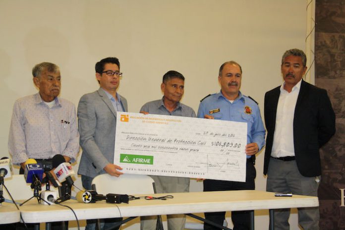 La entrega simbólica de un cheque por 106 mil 809 pesos, se llevó a cabo en el auditorio de la Estación Central de Bomberos 1, localizada en la avenida Heroico Colegio Militar y el ingeniero José Octavio Rico Hernández, presidente de la asociación donadora, fue el encargado de hacer la entrega de la aportación, la cual será destinada a la reparación de tres unidades de Protección Civil así como de un compresor.