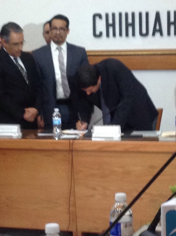 Reabierta la sesión en las instalaciones del Consejo Estatal del Instituto Estatal Electoral en punto de las 19:00 y con presencia del C. Javier Corral se llevó a cabo la entrega de la Constancia de Mayoría que lo acredita como Gobernador Electo del Estado de Chihuahua.