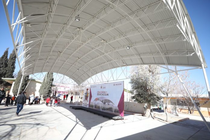 Ciudad Juárez, Chih .- “Quiero agradecer al alcalde a nombre de todos los niños y niñas que estamos en esta escuela, así como maestros y padres de familia, por hacer este sueño posible, de tener un espacio cubierto para realizar actividades al aire libre”, dijo el alumno Roberto Rodríguez.