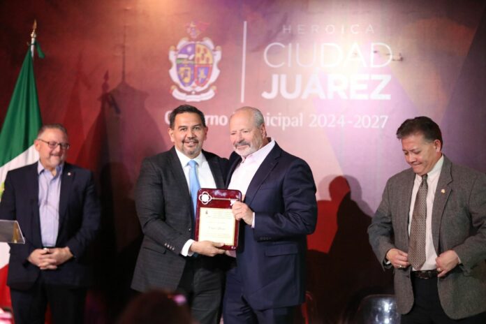 Ciudad Juárez, Chih .- Durante el evento, se destacó la trayectoria de Leeser como alcalde en diferentes periodos, resaltando su contribución al desarrollo económico de la región y su estrecha colaboración con el gobierno de Juárez en momentos críticos de la historia fronteriza, como la pandemia de COVID-19.